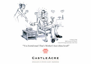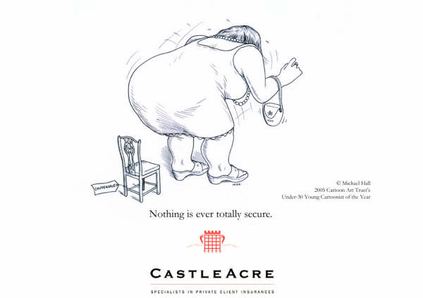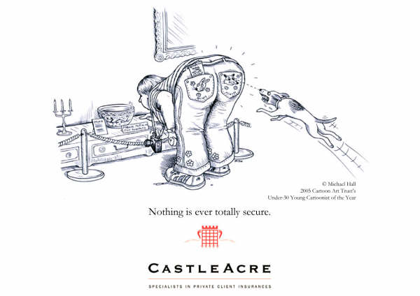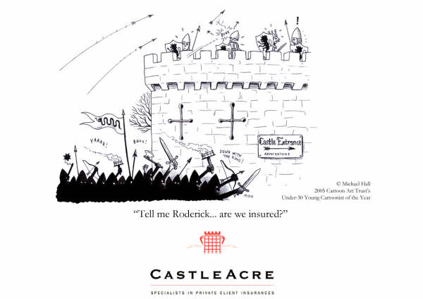 enquiries@castleacreinsurance.comMike Hall is a freelance illustrator and graphic designer whose obsession with cartoons began at a tender age with Beano and Hergé´s Tintin books. A self-confessed ‘Londonologist’ he moved to the city in 2005 when he won first prize in a national competition with his caricature of musician, Pete Doherty. Castleacre snapped him up -commissioning a series of cartoons and since then he has gone on to produce work for an eclectic group of clients – ranging from Oxford University Press to Roxanne Von Noir (burlesque performer) (2010).